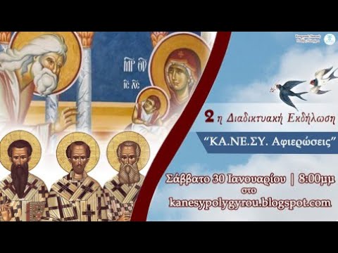 Τα παιδιά των ΚΑτηχητικών ΝΕανικών ΣΥνάξεων Πολυγύρου, ετοίμασαν με χαρά ένα βίντεο με αφιερώσεις στους δικούς μας Αγιους, τους 3 Ιεράρχες αλλά και για την Υπαπαντή - γιορτή της μητέρας. Δίνουμε ραντεβού στις οθόνες μας, για να παρακολουθήσουμε την πρεμιέρα μας το Σάββατο, όλοι μαζί. Για να το παρακολουθήσετε πατήστε εδώ.